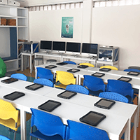 23 aulas totalmente equipadas con la más alta tecnología (proyector, Apple tv, sistema de audio, ipads, chromebooks, internet)